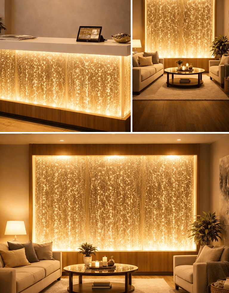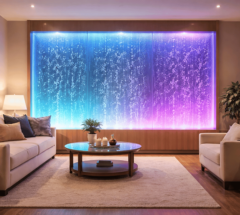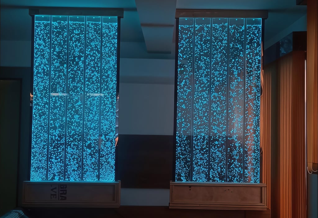 Enhance your home with calming and visually striking bubble wall installations designed to complement modern residential interiors, home theaters, and feature walls.